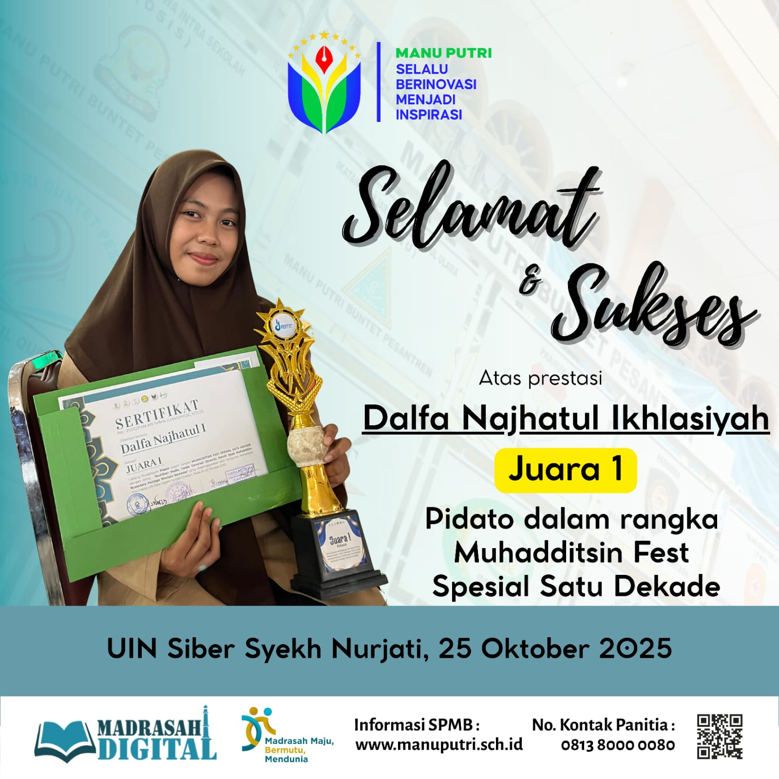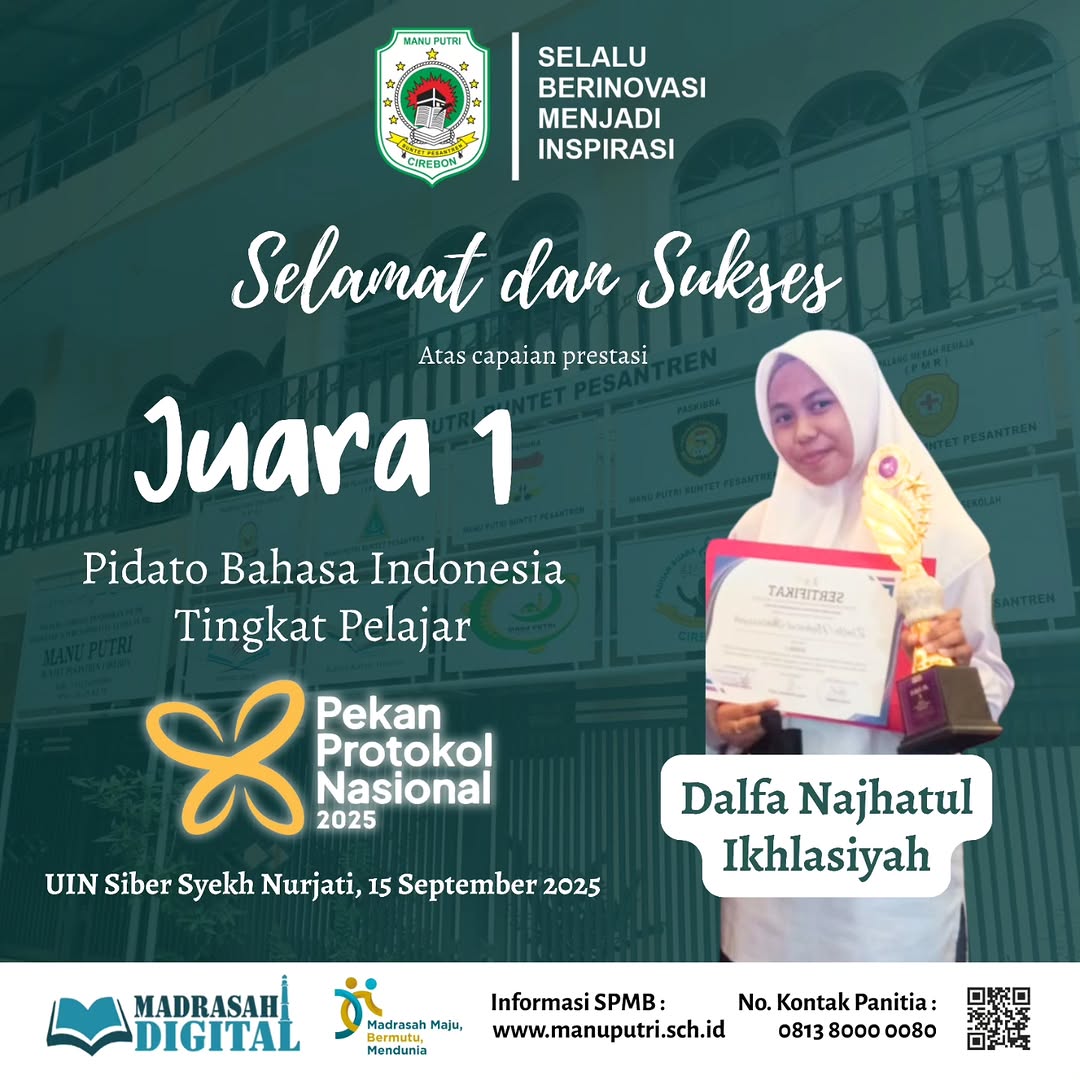 Assalamu'alaikum Warahmatullahi Wabarakatuh, Puji syukur kehadirat Allah SWT atas segala rahmat dan karunia-Nya, sehingga kita senantiasa diberikan kekuatan untuk menjalankan amanah pendidikan. Shalawat serta salam semoga tercurah limpahkan kepada junjungan kita, Nabi Muhammad SAW, beserta keluarga, sahabat, dan para pengikutnya hingga akhir zaman. Selamat datang di website resmi MANU Putri Buntet Pesantren Cirebon. Dengan bangga kami hadirkan platform digital ini sebagai jendela informasi dan komunikasi antara madrasah, siswi, wali siswi, alumni, dan seluruh masyarakat....